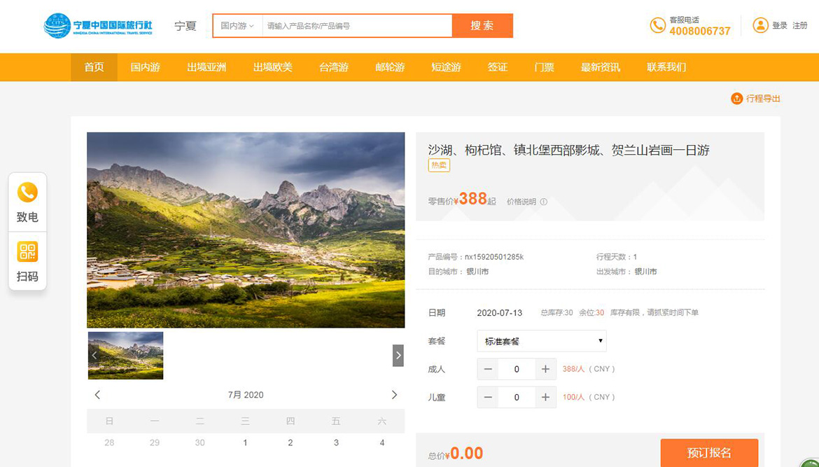 寧夏中國旅行社有限公司是寧夏銀川旅行社的龍頭企業(yè),經(jīng)國家旅游局批準,工商局注冊的國際旅行社。寧夏中旅提供出境旅游、港澳旅游、臺灣旅游、自由行、個性旅游定制