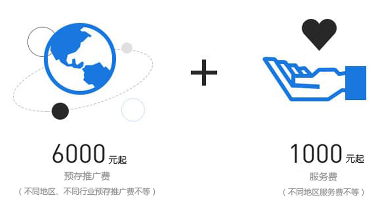 首次開戶僅需繳納基本預存推廣費用 6000元(起),服務費 1000 元(起),(服務費和基本預存推廣費根據(jù)地區(qū)情況可能有所變動,具體費用由客戶和服務提供方另行約定)。