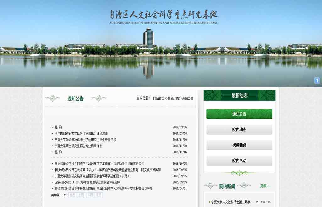 寧夏大學(xué)回族研究院的前身是始建于1986年的寧夏大學(xué)回族文學(xué)研究所,1998年更名為寧夏大學(xué)回族文化研究所,2003年擴(kuò)展為寧夏大學(xué)回族研究中心,2008年定名為寧夏大學(xué)回族研究院。研究院以“兼容并包、寧靜致遠(yuǎn)”為理念,努力建設(shè)國內(nèi)著名、具有國際影響力的中國民族學(xué)(回族學(xué))研究、教學(xué)機(jī)構(gòu)。