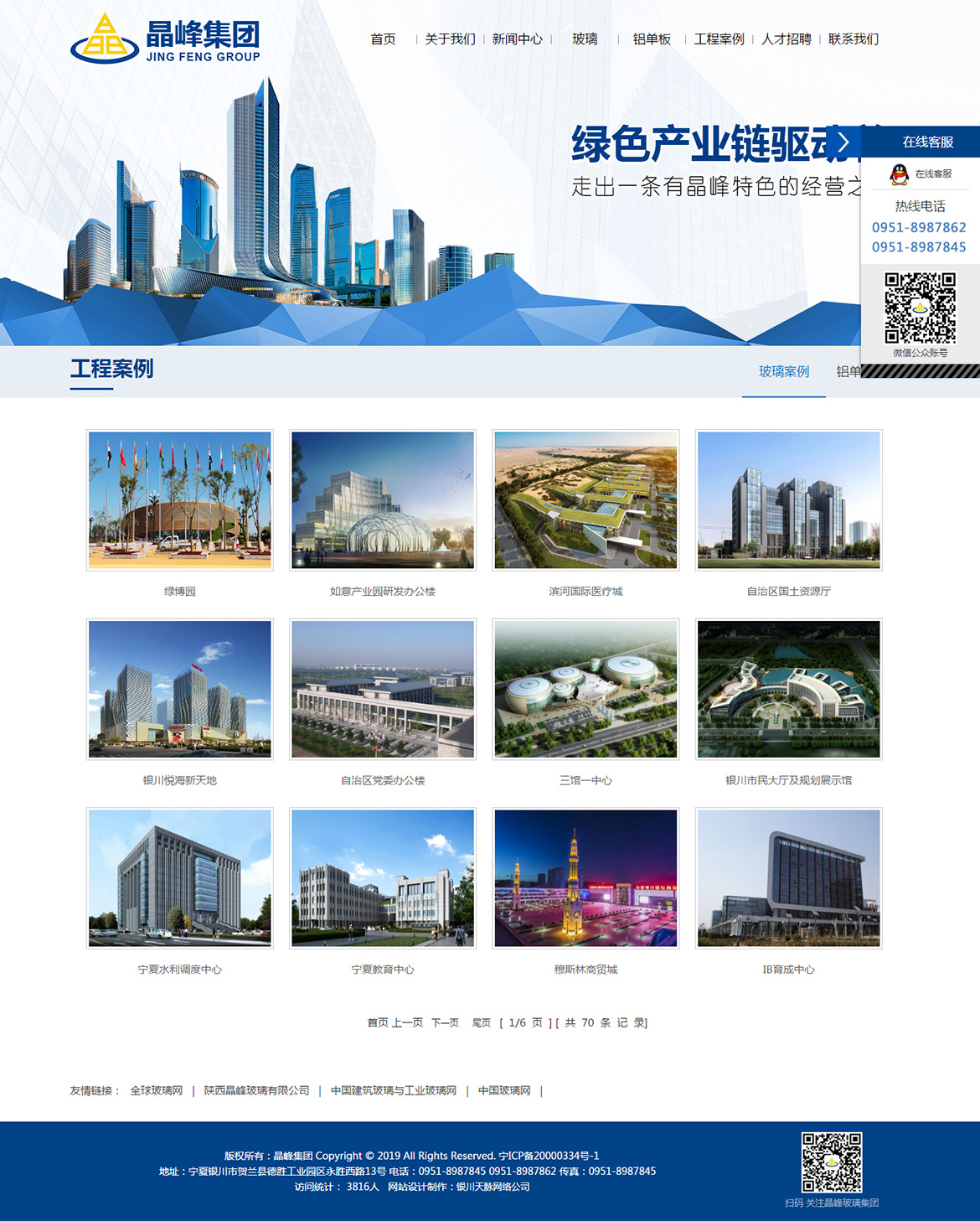 “晶峰集團(tuán)“成立于1996年,占地1000余畝,總資產(chǎn)10億元,擁有4家全資子公司,現(xiàn)有員工600余人,是西北地區(qū)玻璃及鋁單板深加工龍頭企業(yè)。