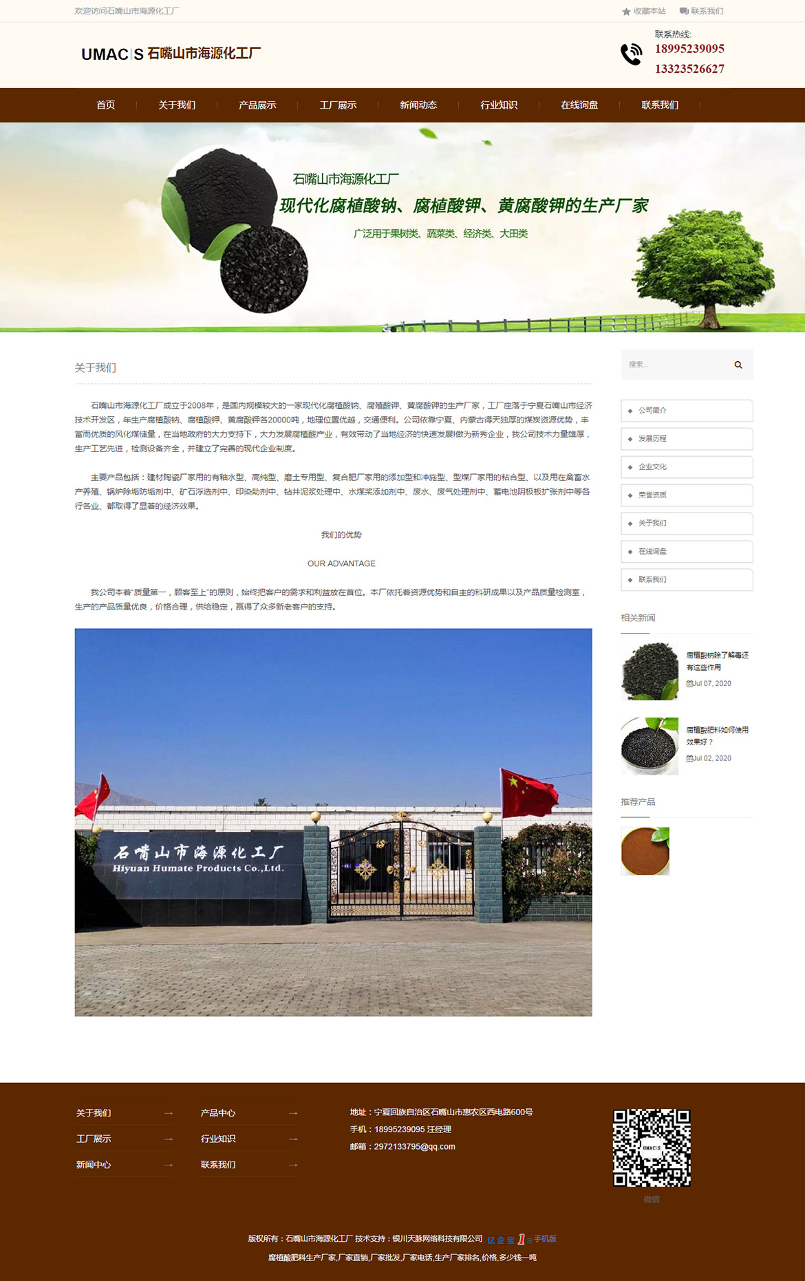 石嘴山市海源化工廠(chǎng)成立于2008年,是國(guó)內(nèi)規(guī)模較大的一家現(xiàn)代化腐植酸鈉、腐殖酸鉀、黃腐酸鉀的生產(chǎn)廠(chǎng)家,工廠(chǎng)座落于寧夏石嘴山市經(jīng)濟(jì)技術(shù)開(kāi)發(fā)區(qū),年生產(chǎn)腐植酸鈉、腐植酸鉀、黃腐酸鉀各20000噸,地理位置優(yōu)越,交通便利