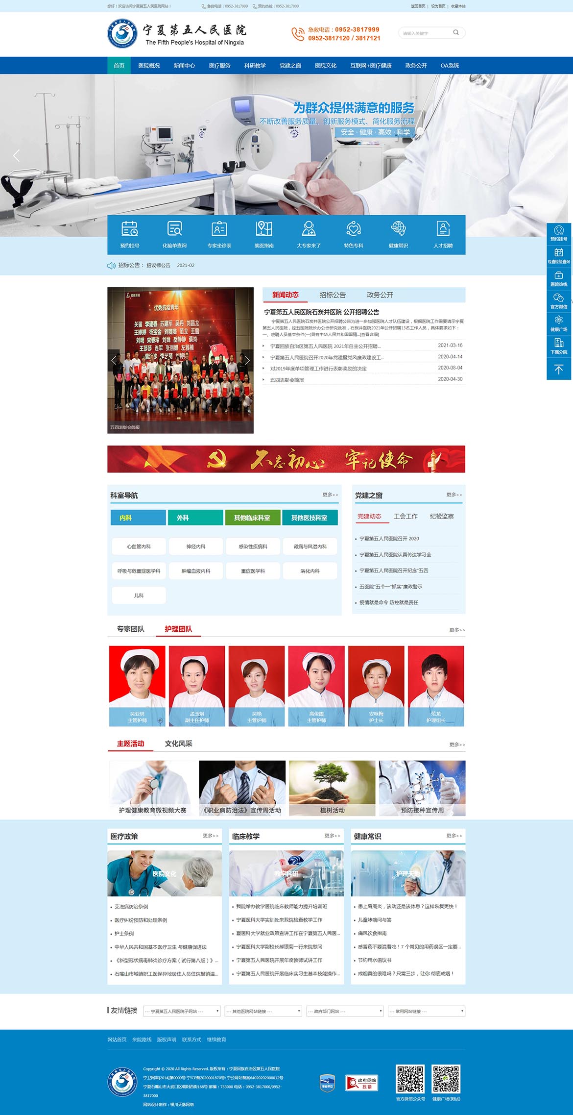 寧夏回族自治區(qū)第五人民醫(yī)院是一所集醫(yī)療、教學(xué)、科研、礦山救護(hù)、預(yù)防保健、康復(fù)為一體的三級(jí)乙等綜合醫(yī)院,是國家級(jí)“愛嬰醫(yī)院”、衛(wèi)計(jì)委國際緊急救援網(wǎng)絡(luò)醫(yī)院、國家安監(jiān)總局醫(yī)療救護(hù)中心寧夏分中心、寧夏礦山救護(hù)中心、寧夏醫(yī)科大學(xué)教學(xué)醫(yī)院,是寧夏回族自治區(qū)唯一一家通過ISO9001質(zhì)量管理體系認(rèn)證的醫(yī)院。