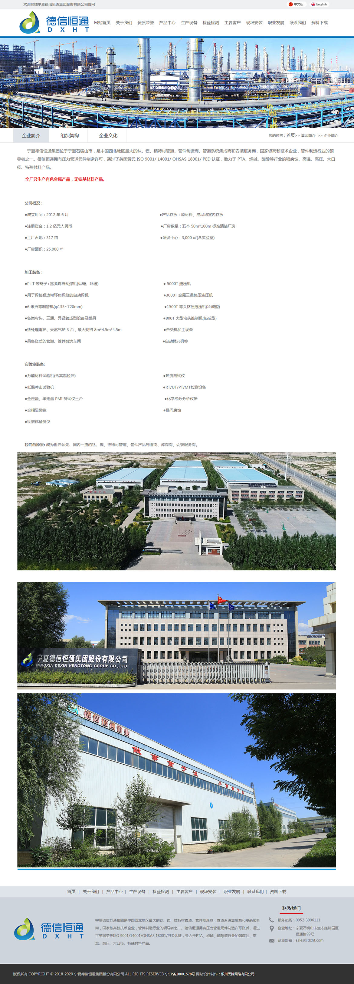 寧夏德信恒通集團(tuán)位于寧夏石嘴山市,是中國(guó)西北地區(qū)鈦、鎳、鋯特材管道、管件制造商、管道系統(tǒng)集成商和安裝服務(wù)商